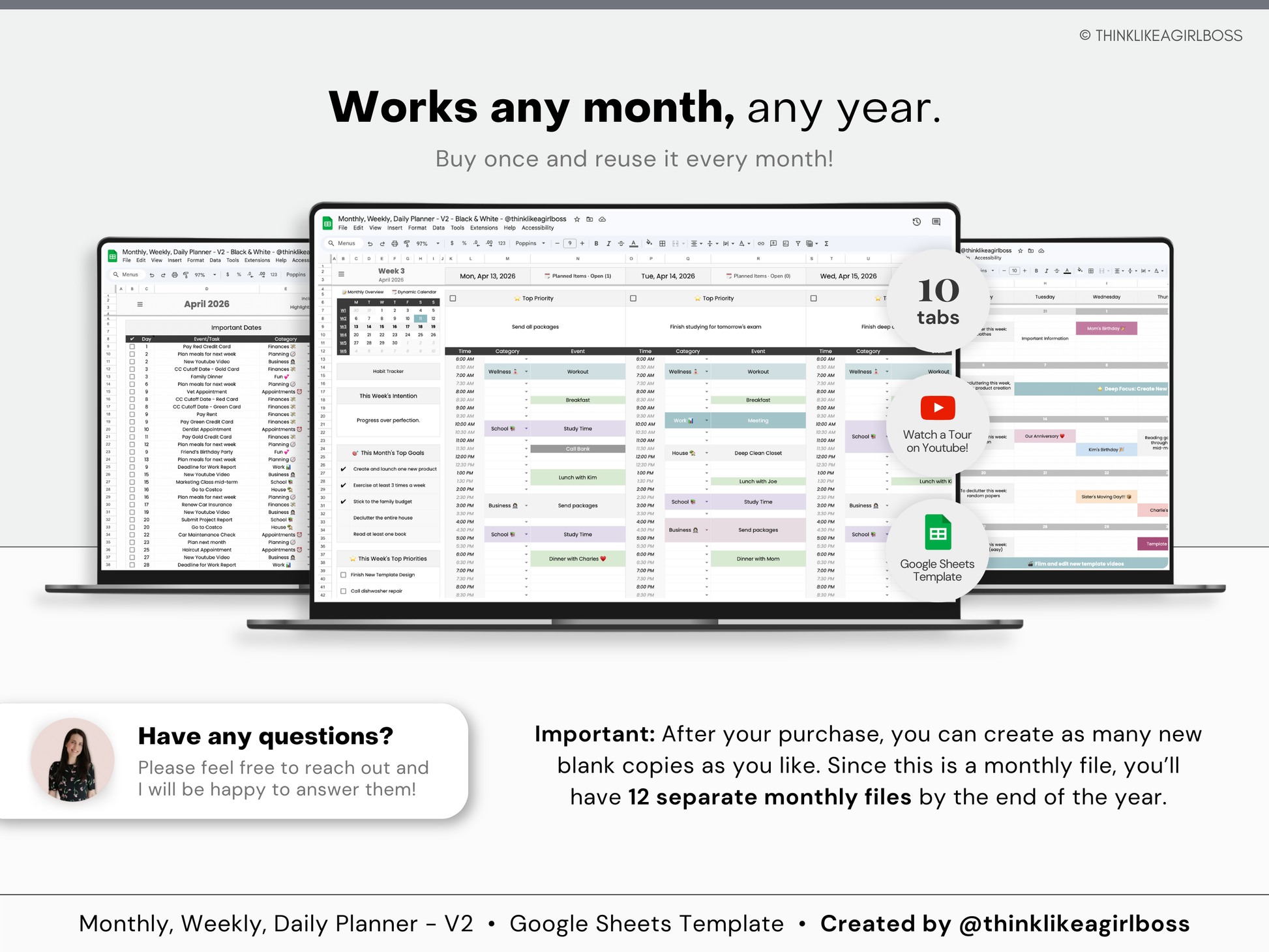 If you have any questions before or after purchasing, please feel free to reach out. I love talking to you and helping! You can fill out the contact form or send an email to hello@thinklikeagirlboss.com