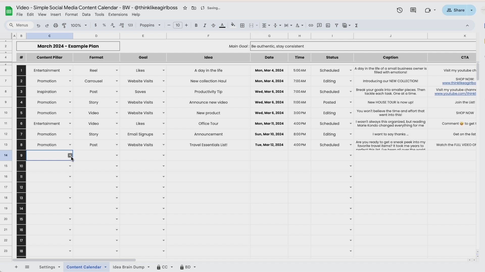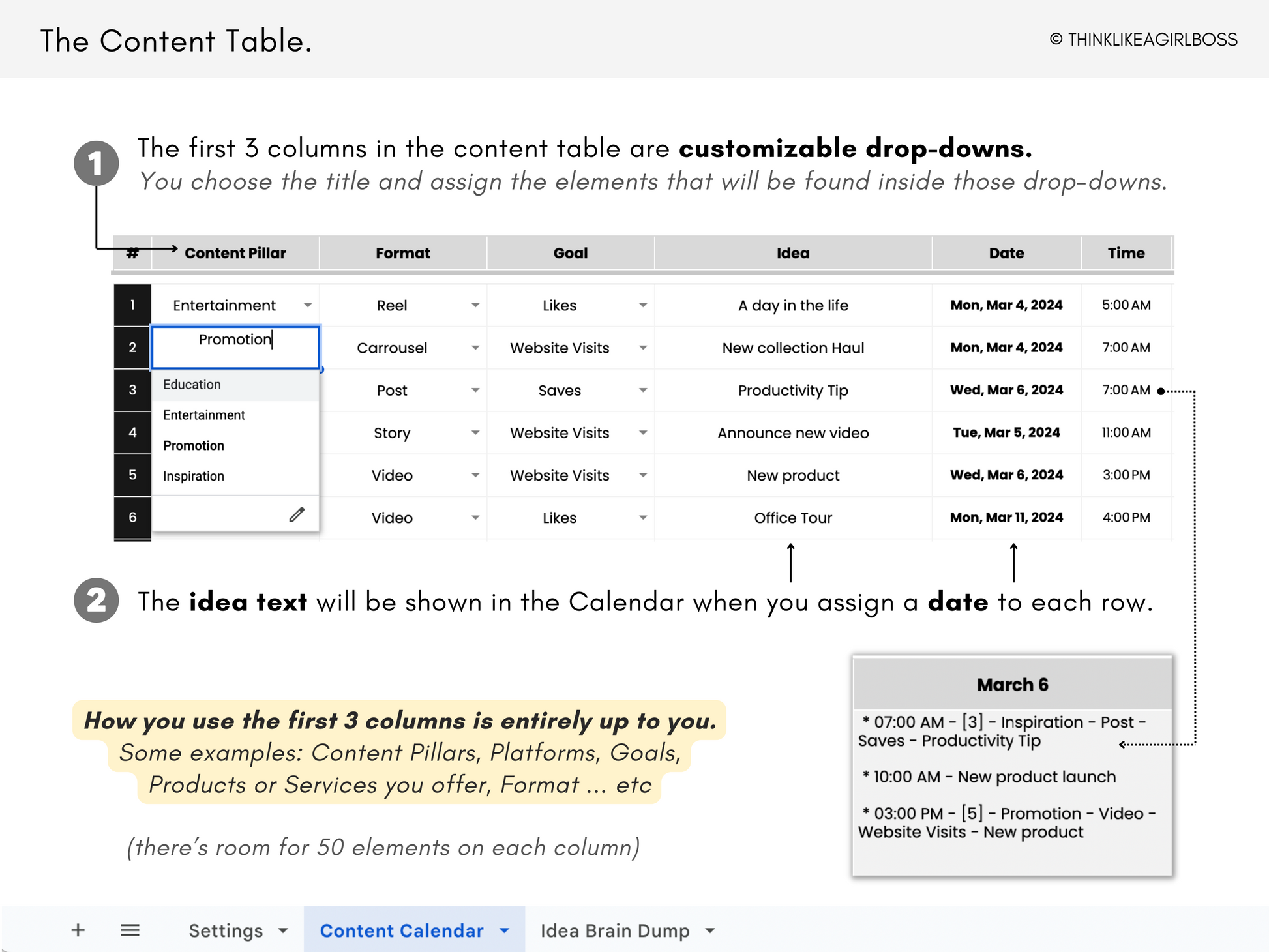 2 - Content Calendar: Add your content ideas and assign dates so they can be shown in the Calendar View.