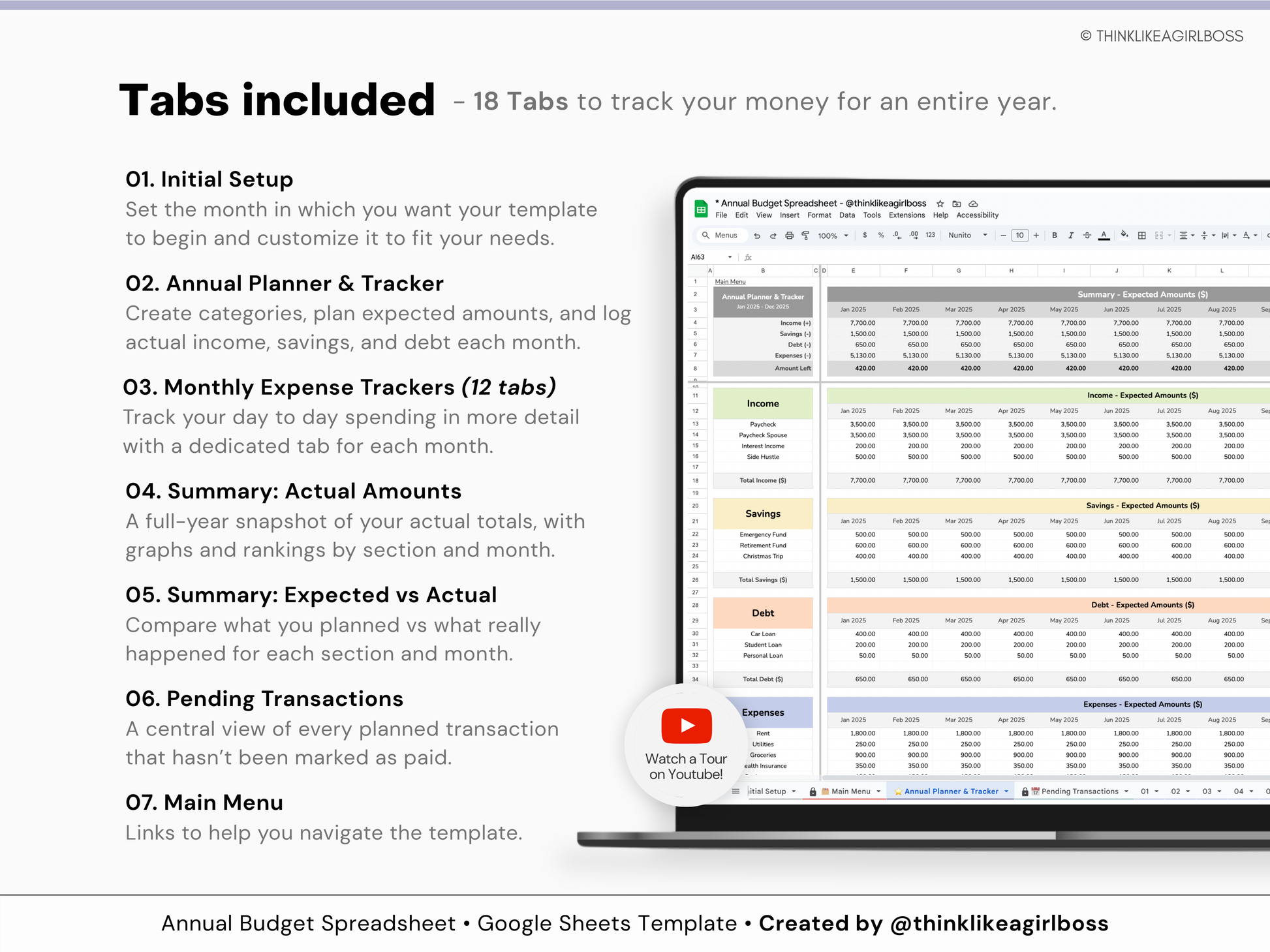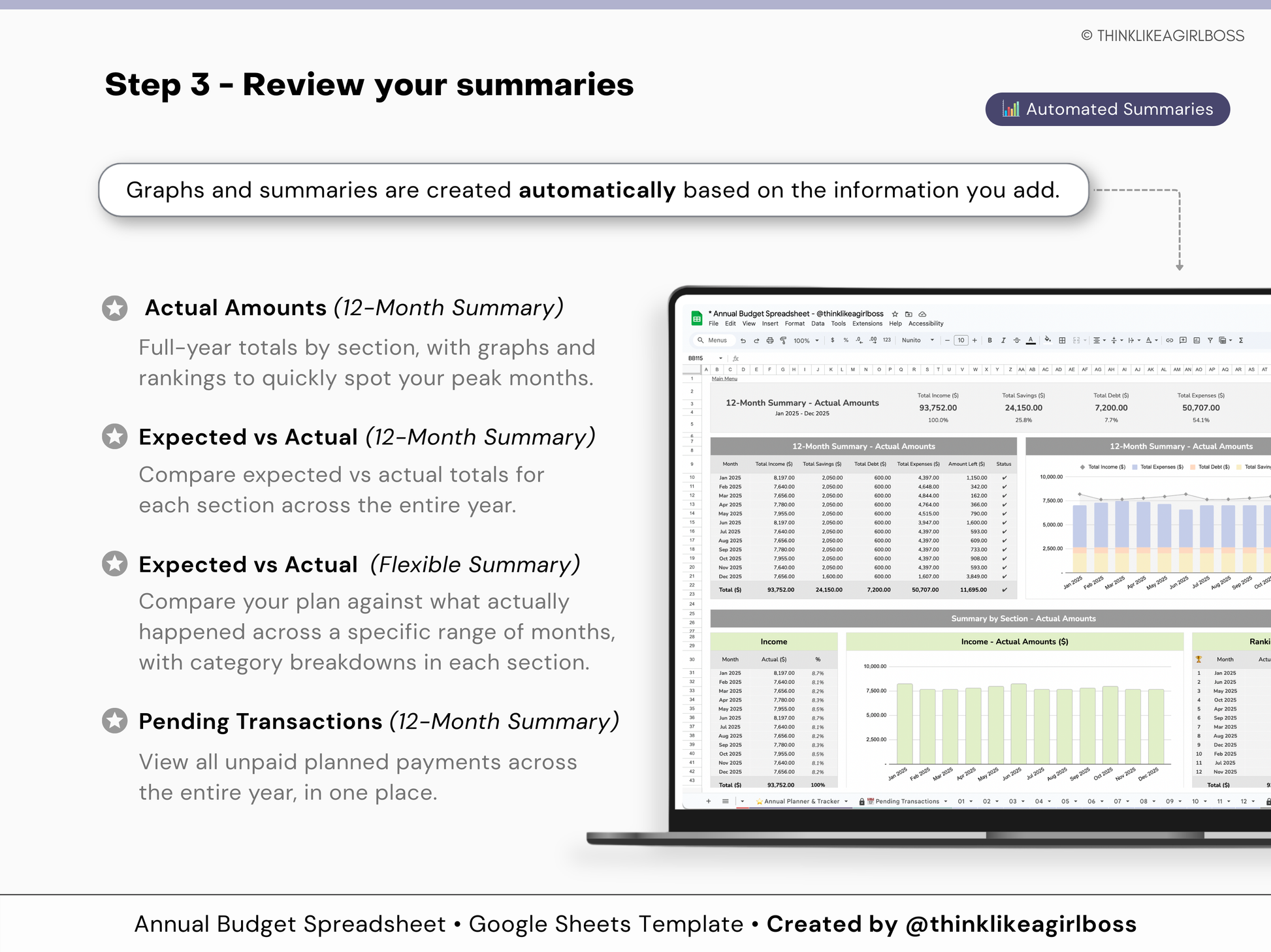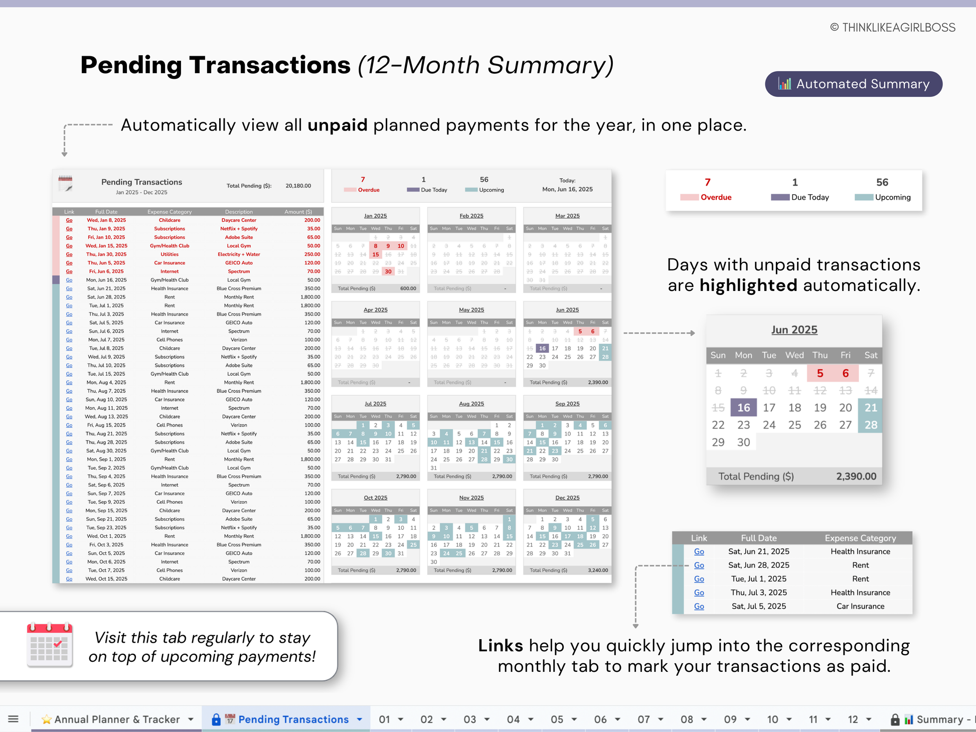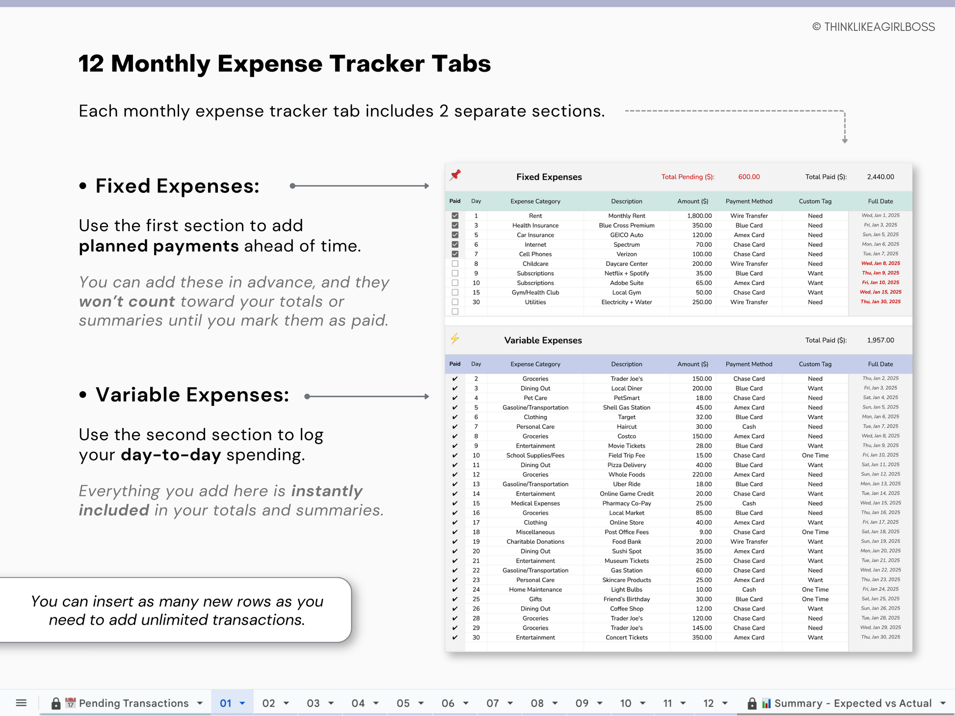 You can track your monthly spending in more detail using a dedicated expense tracker tab for each month.