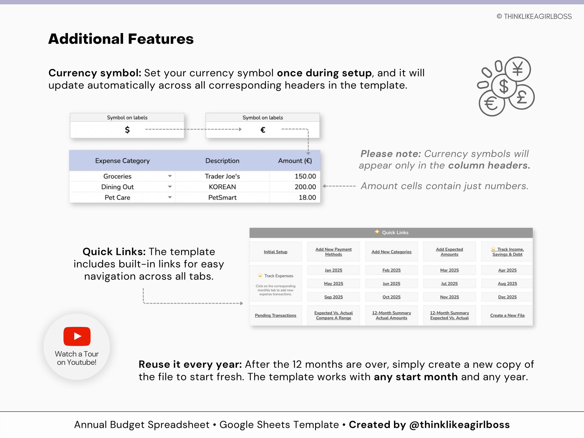 When your 12 months are done, create a new copy of the template and start again. No need to repurchase!