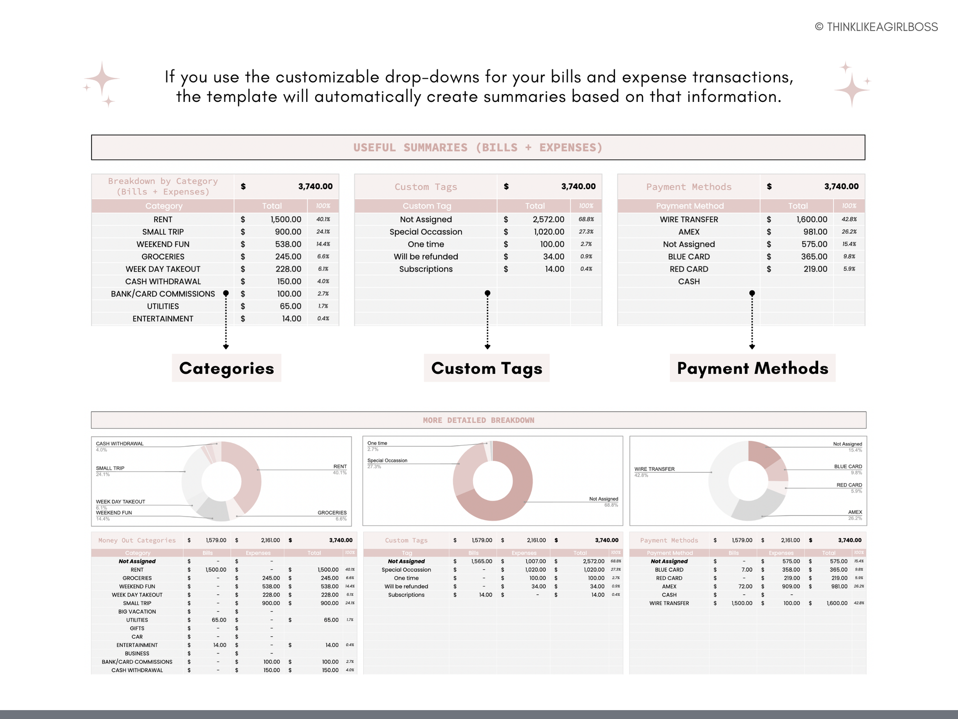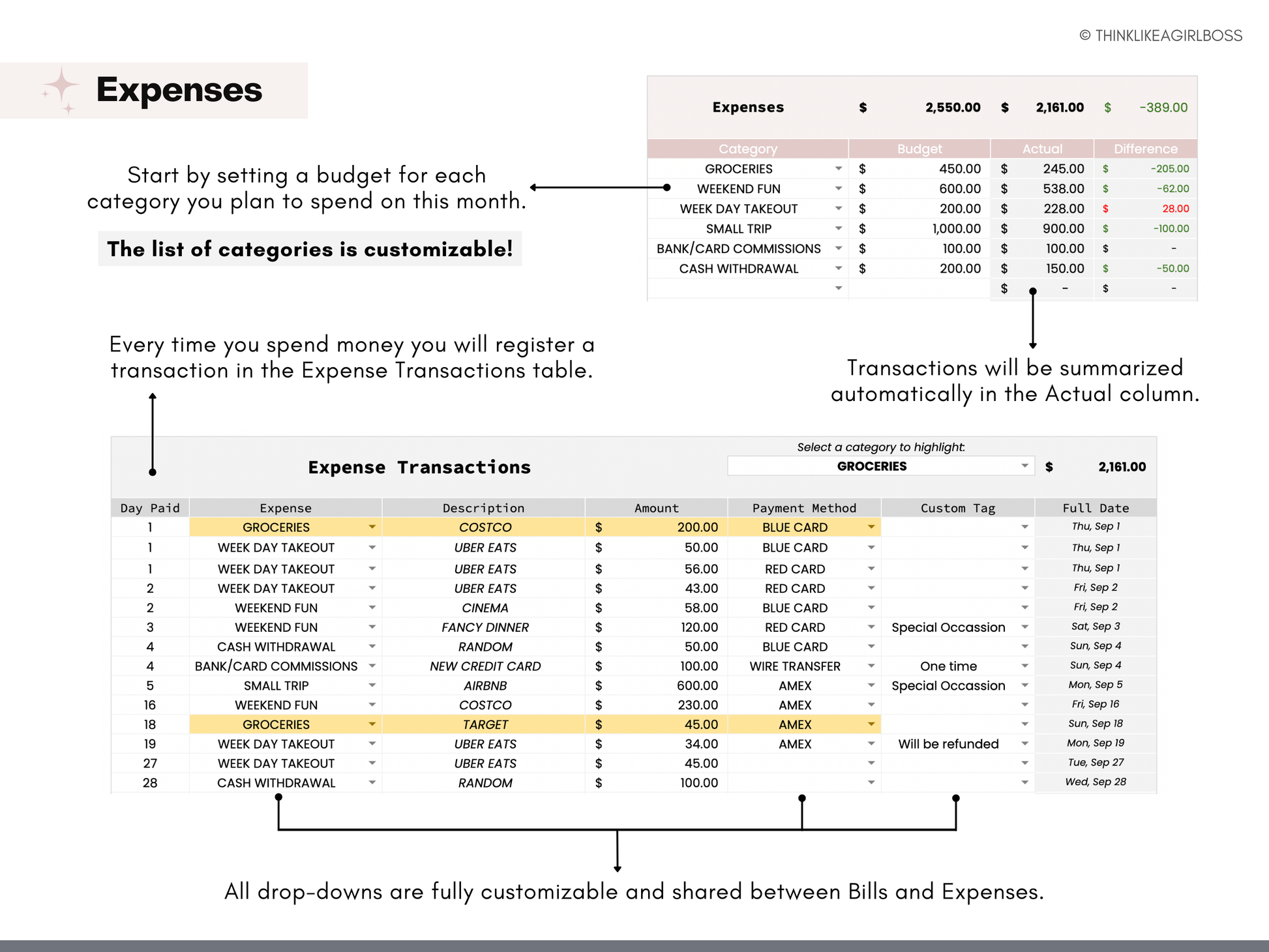 This second sheet contains all of your monthly information, so you can duplicate that sheet each month and keep everything inside the same file OR you can choose to create a completely new file each month. Your call 😊👩🏻‍💻✨